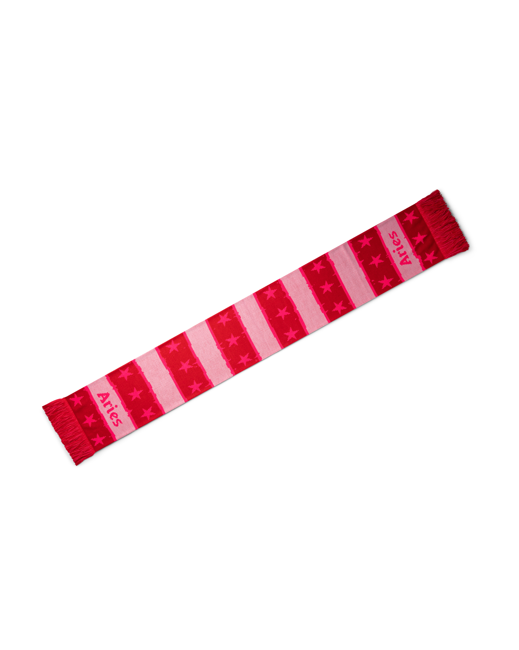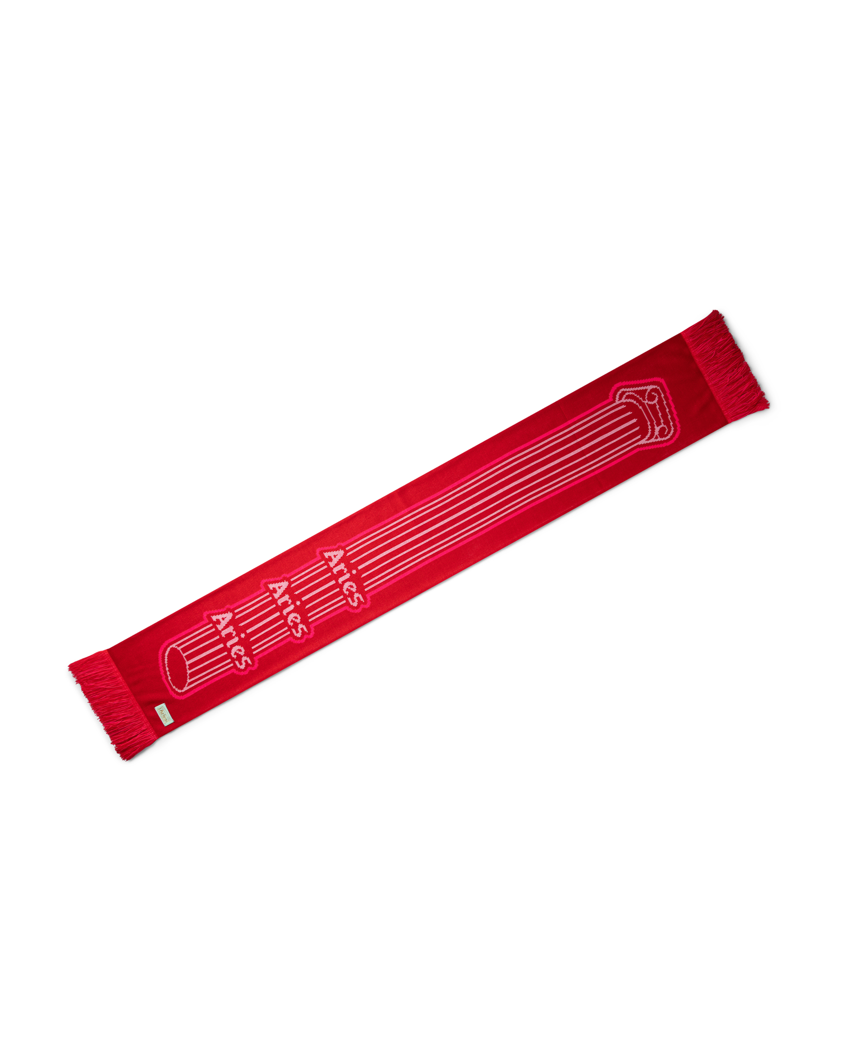 Sports-style scarf with stripes on one side and Aries classic Column graphic on the other side. 100% acrylic.