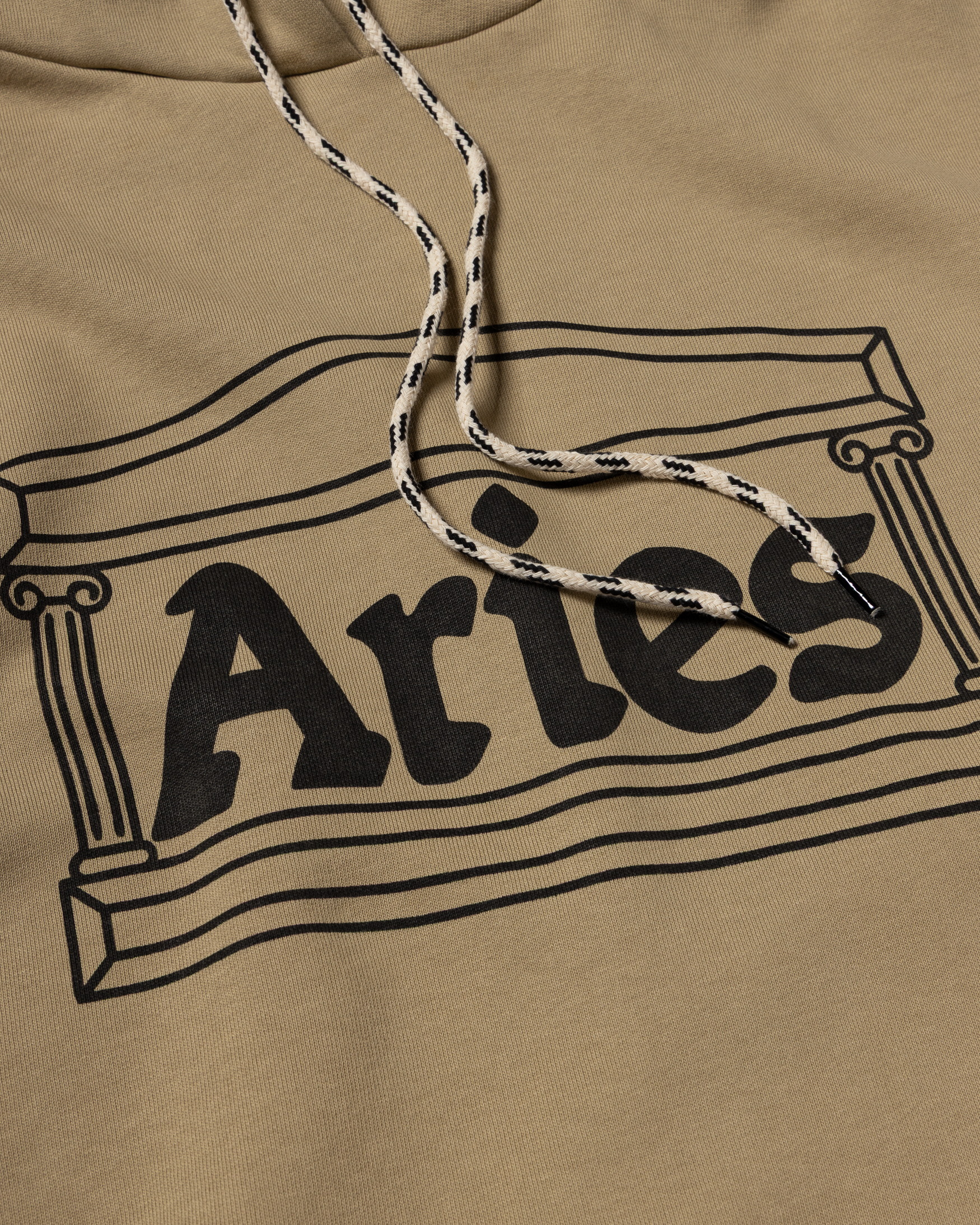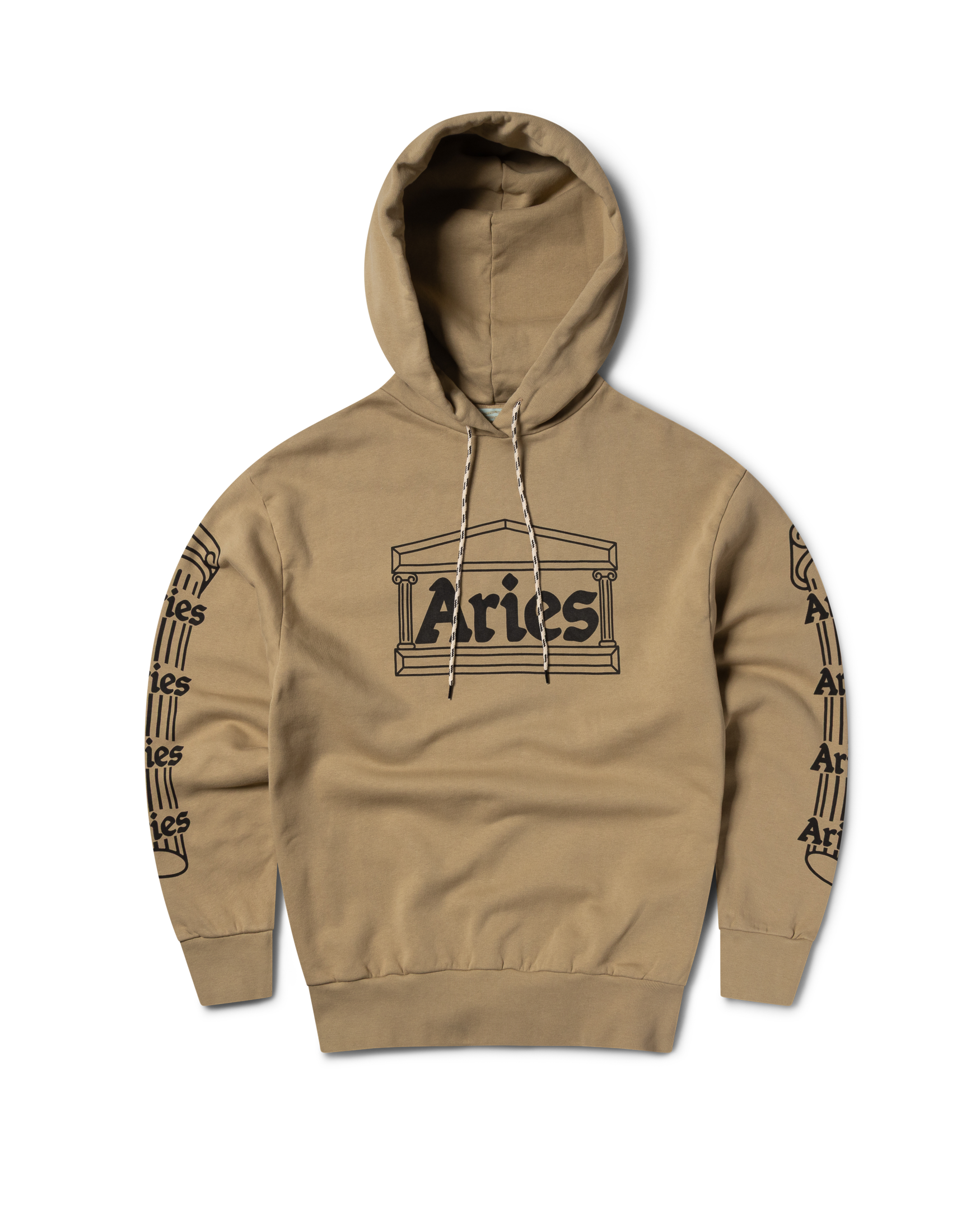 Unisex hooded sweatshirt made from brushed-back 100% cotton jersey fleece. Featuring an Aries Temple and Column screen-printed graphics.