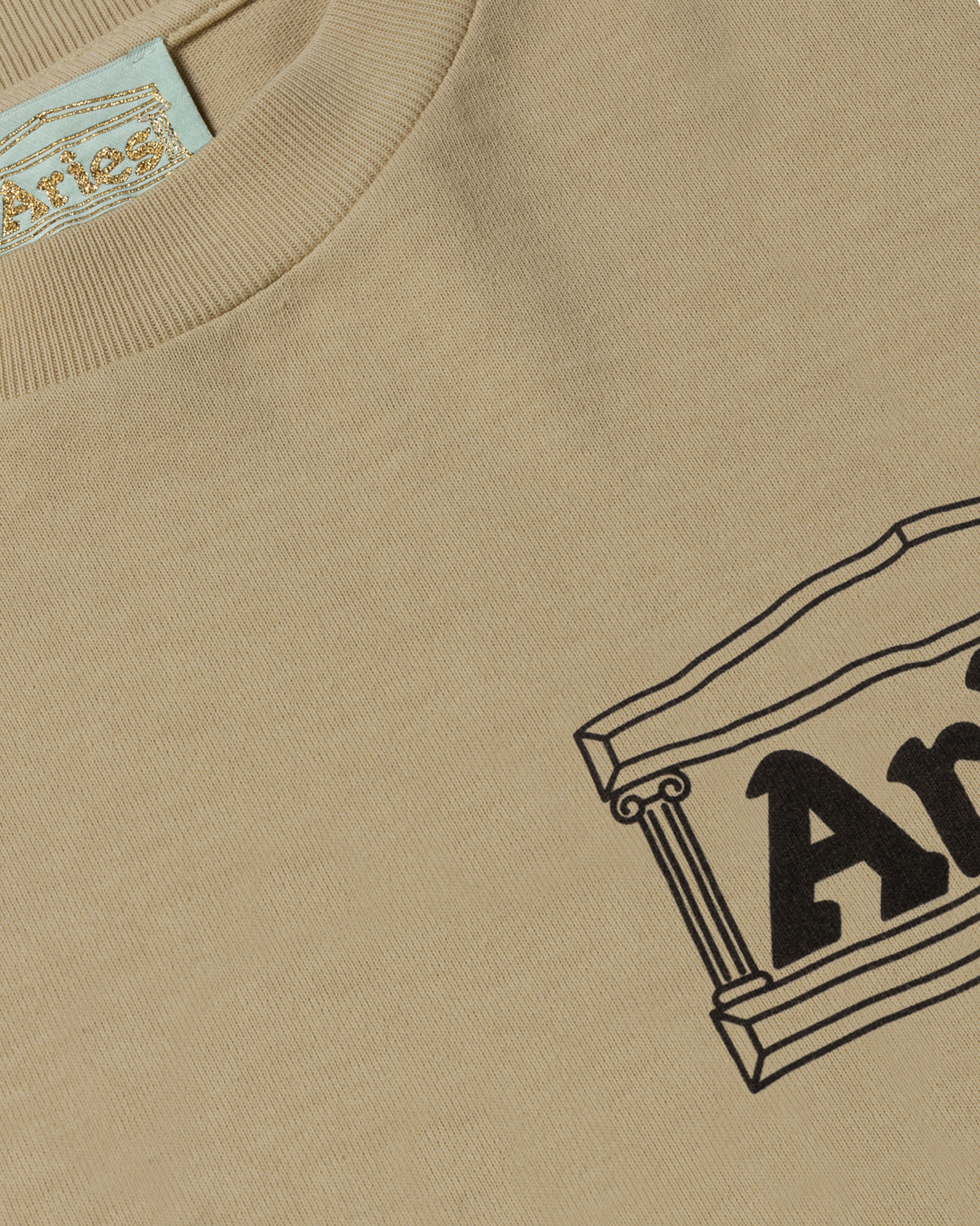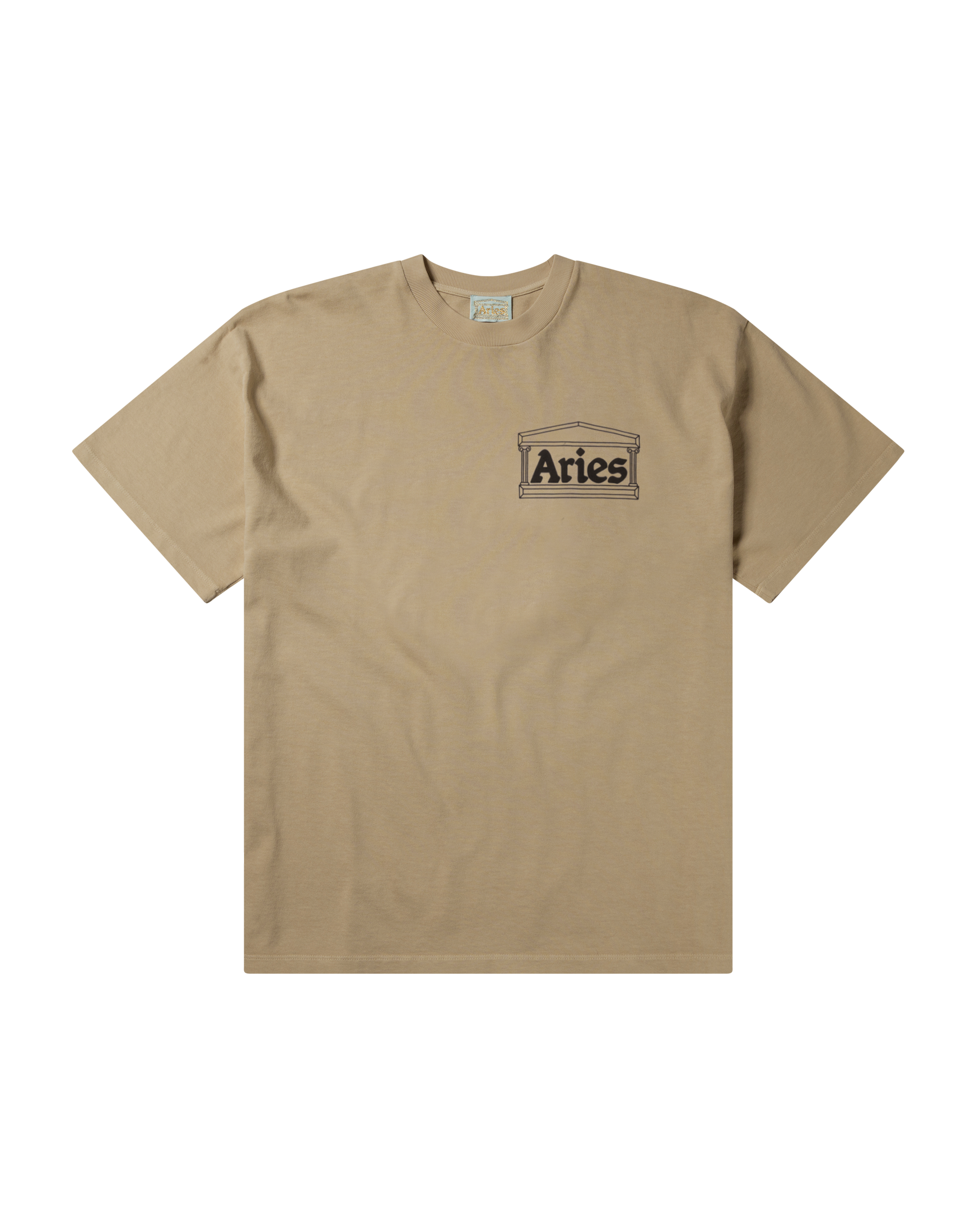 Unisex short sleeve mid-weight t-shirt with classic Aries temple logo screen print on the front chest.